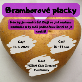 V pondělí 15. 5. 2023 nás na klubu čeká další kurz vaření. Tentokrát se děti naučí připravit smažené bramborové placky.