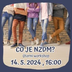Co je NZDM? Na tuto otázku se společně s dětmi zaměříme v úterý 14. května 2024 v 16:00 hodin. Oživíme si pojmy jako je například individuální plán, smlouva o poskytnutí sociální služby, sociální služba, nestátní nezisková organizace apod. Zastavíme se také u pravidel klubu. Akce proběhne v úterý 14. května 2024 od 16.00 do 18.00 hodin pod vedením lektorky.