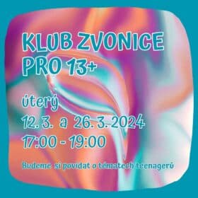 V úterý 26. 3. 2024 od 17.00 do 19.00 hodin bude program v NZDM Klubu Zvonice Český Brod věnován zájemcům starším 13 let, se kterými budeme probírat jejich aktuální témata. Program je vhodný i pro děti a mládež u ukrajinské komunity. Na místě bude překladatelka.
