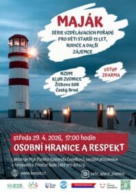 Zveme děti starší 13 let, rodiče i další zájemce na další setkání ze série vzdělávacích pořadů MAJÁK, které se tentokrát zaměří na téma osobních hranic a respektu. Společně se budeme věnovat tomu, jak poznat vlastní hranice, jak je zdravě nastavovat vůči druhým a proč je vzájemný respekt důležitým základem bezpečných a zdravých vztahů. Dotkneme se také situací, kdy někdo naše hranice překračuje, a budeme hledat způsoby, jak na podobné momenty reagovat.
