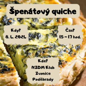 V pondělí 8. 4. 2024 pokračujeme na klubu v nácviku kuchařských dovedností. Tentokrát si upečeme špenátový quiche.