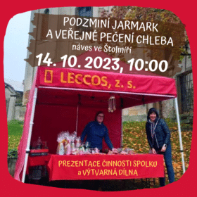 Naši činnost vám představíme tentokrát na Podzimním jarmarku a pečení chleba v nedalekém Štolmíři na návsi. Ke koupi budou výrobky, které jsme vyrobili společně s dětmi z NZDM Klub Zvonice Český Brod. Nebude chybět ani výtvarná dílna pro nejmenší. Těšíme se na vás v sobotu 14. října 2023 od 10:00 u kostela sv. Havla ve Štolmíři.