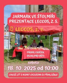 V sobotu 18. října 2025 od 10.00 se s námi můžete potkat na Jarmarku ve Štolmíři. Těšit se můžete na stánek LECCOS, z. s., prodej ručně vyráběných svíček, dílnu pro děti a další zajímavý program. Přestavíme vám také všechny služby.