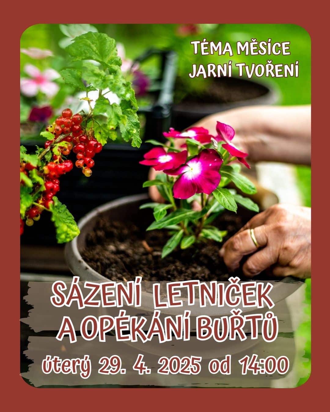 Zveme všechny zájemce do našeho NZDM Klubu Zvonice v Českém Brodě na akci s názvem Sázení letniček a opékání buřtů, která se koná v úterý 29. dubna 2025 od 14.00 hodin. Přijďte strávit příjemné odpoledne…