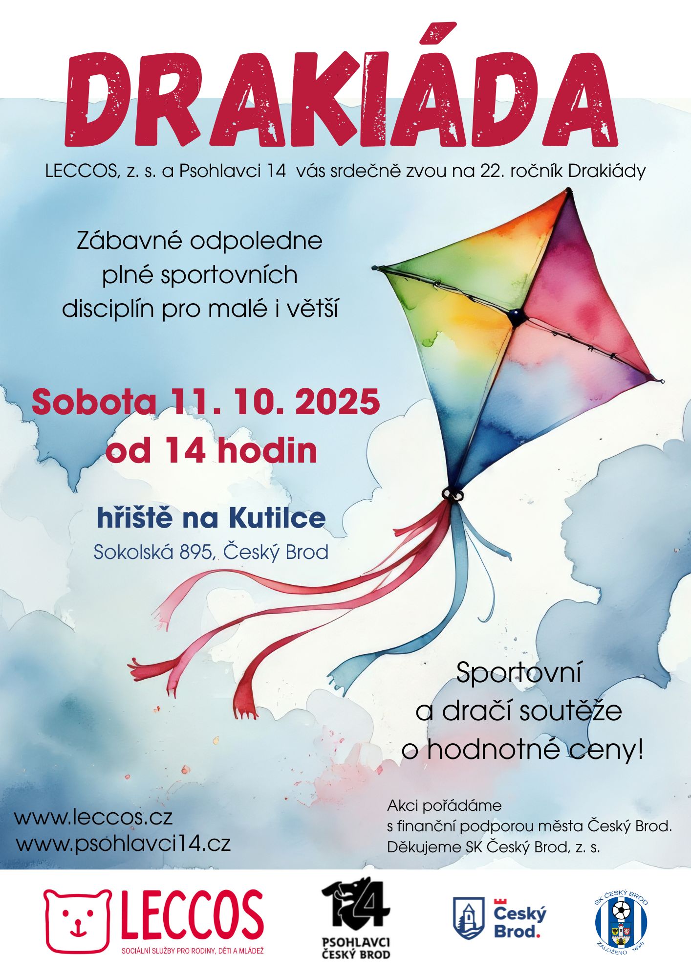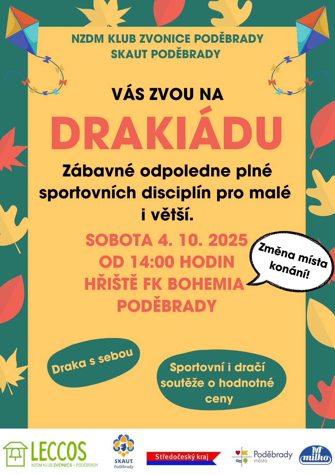 Společně se Skautem Poděbrady vás srdečně zveme na zábavné odpoledne plné sportovních disciplín pro malé i větší. Čekají vás sportovní i dračí soutěže o hodnotné ceny. Nezapomeňte, draka s sebou! Startovné 50 Kč Akci finančně podpořilo…