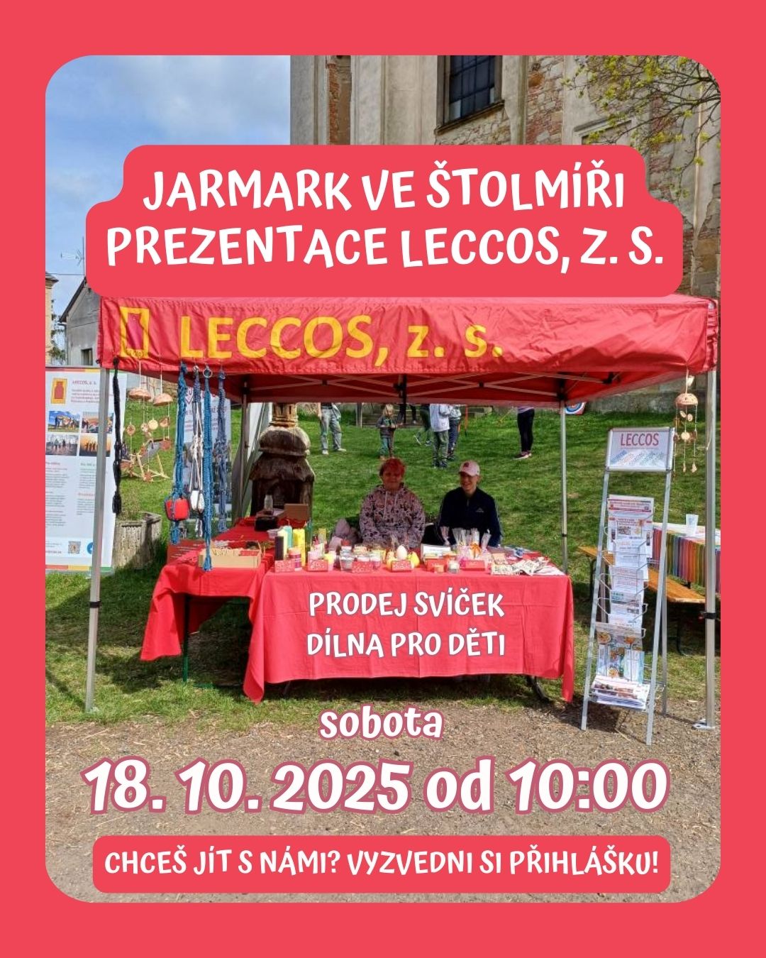 V úterý 14. října 2025 od 15.00 si v NZDM Klubu Zvonice Český Brod můžete vyzkoušet výrobu svíček, které budeme následně prezentovat a prodávat na jarmarku ve Štolmíři 18. října 2025. Přijďte tvořit, vonět a…