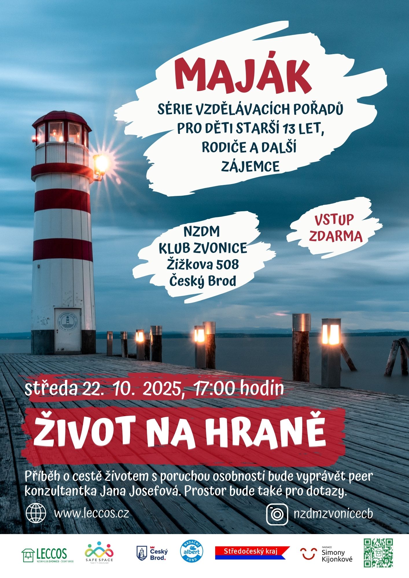 Zveme vás na otevřenou a inspirativní besedu o životě s poruchou osobnosti, kterou pořádáme v rámci vzdělávacích programů Maják pro děti starší 13 let, rodiče a další zájemce. Přijďte si poslechnout silný příběh peer konzultantky…