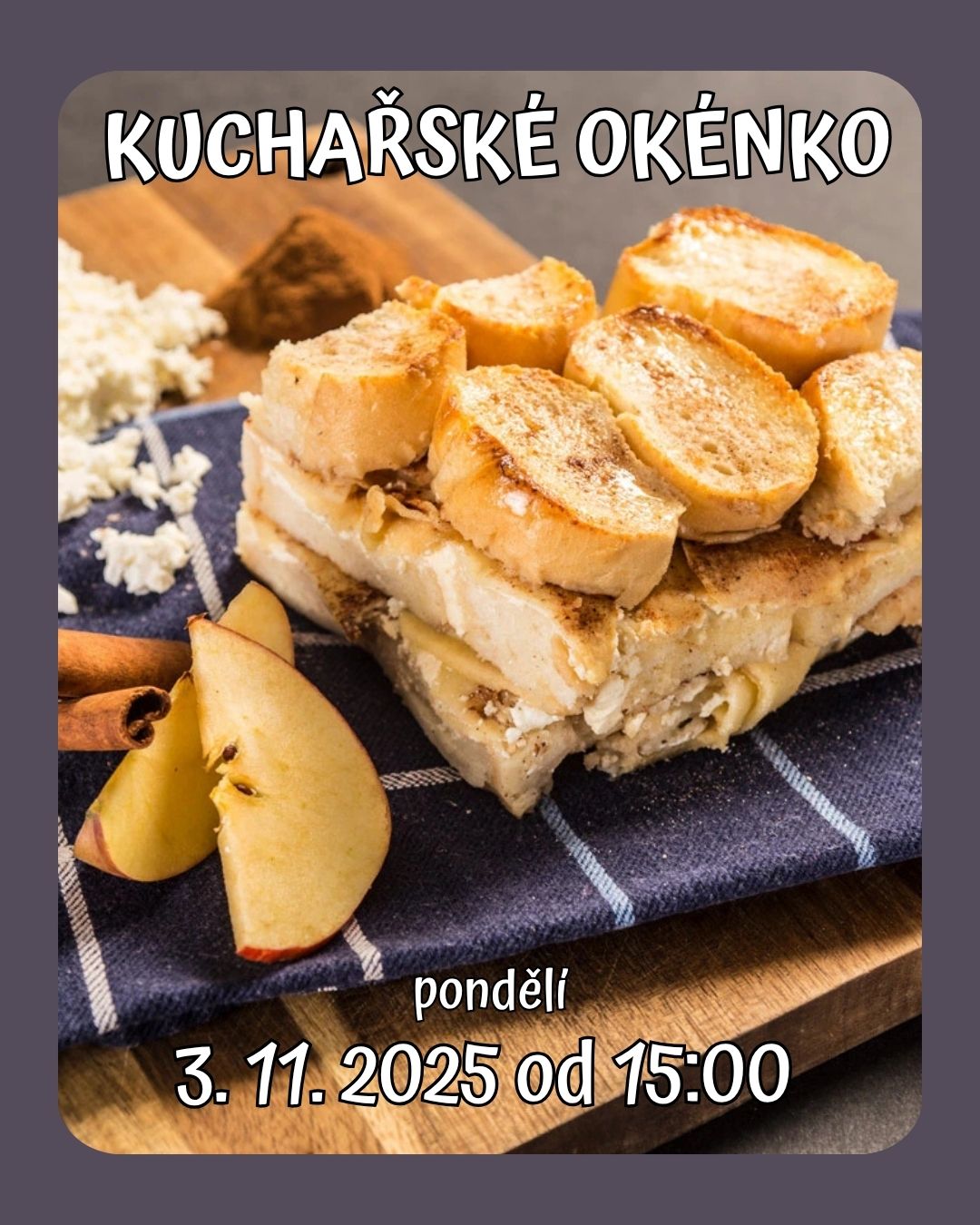 V pondělí 3. listopadu 2025 od 15.00 si v NZDM Klubu Zvonice Český Brod můžete vyzkoušet přípravu jednoduchého podzimního jídla žemlovky v rámci oblíbeného Kuchařského okénka. Společně budeme vařit, povídat si a užijeme si přátelskou…