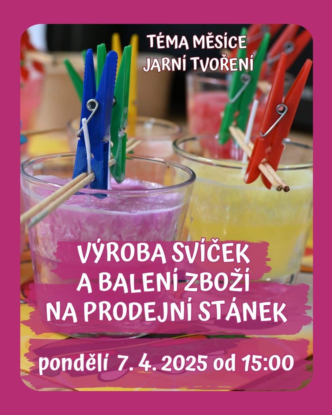 Zveme vás do NZDM Klub Zvonice v Českém Brodě na kreativní dílnu s názvem Výroba svíček a balení zboží na prodejní stánek, která se uskuteční v pondělí 7. dubna 2025 od 15.00 hodin. Aktivita je…