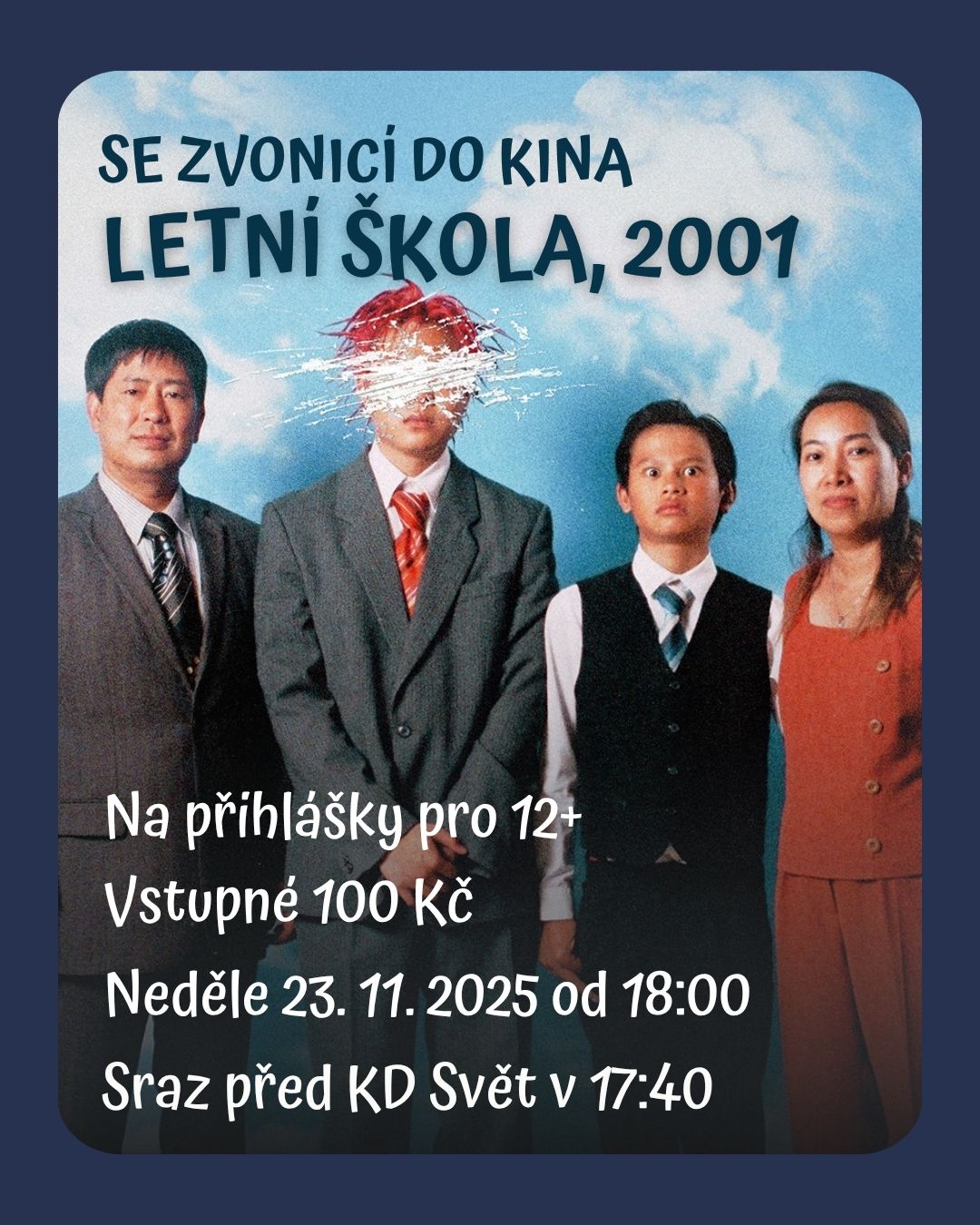 Pro malý zájem je akce zrušena! V neděli 23. listopadu 2025 od 18.00 se vydáme na film Letní škola (2001). Sraz účastníků je v 17.40 před KD Svět v Českém Brodě. Akce je určena pro…