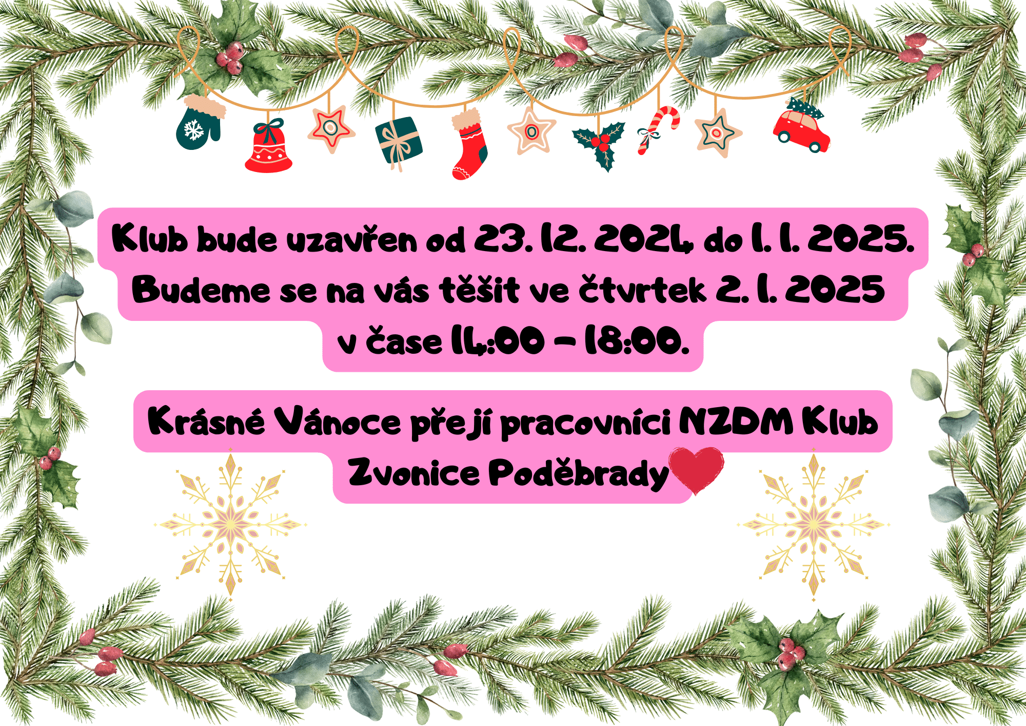 • Uzavření klubu přes vánoční svátky