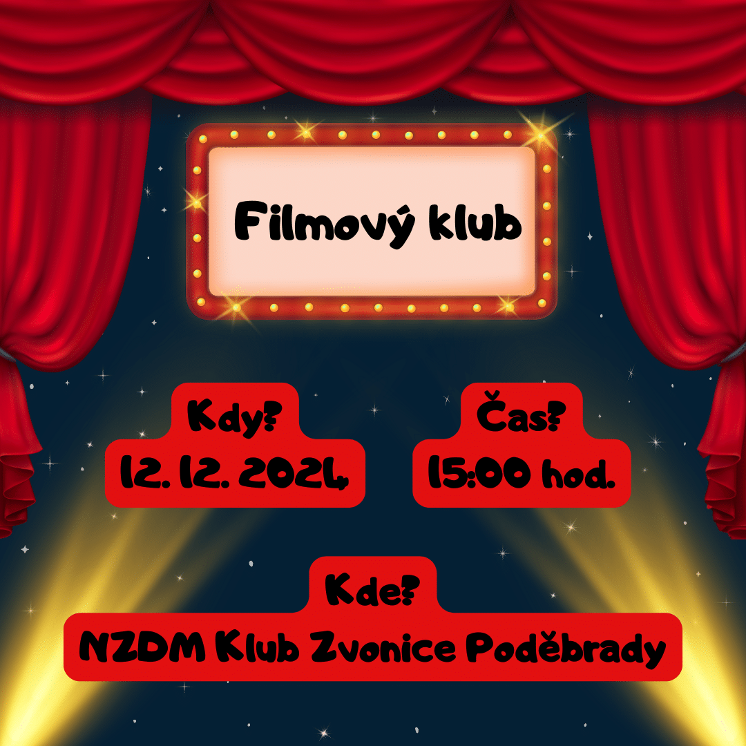 Ve čtvrtek 12. 12. 2024 proběhne Filmový klub. Můžeš se těšit na pohodovou, vánoční náladu. Začínáme v 15:00 hod.