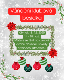 Ve čtvrtek 18. 12. 2025 pořádáme tradiční Vánoční klubovou besídku.
