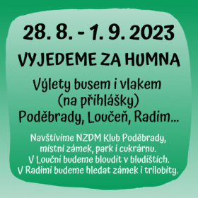 S NZDM Klub Zvonice Český Brod budeme ve dnech 28. 8. – 1. 9. 2023 výletovat! Navštívíme NZDM Klub Poděbrady, místní zámek, park i cukrárnu.